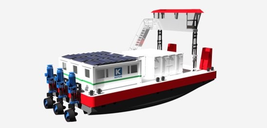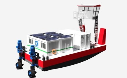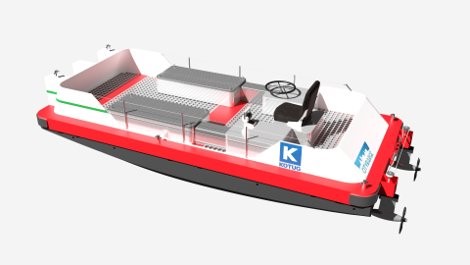 The KOTUG E-Pusher Series currently has three models ranging from 9 to 22 meters in length and a maximum depth of 0,85 to 1,35 meters resulting in a draft that is 30% less than conventional pusher tug designs.
